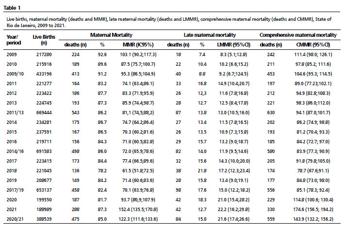 The data sources were the Mortality Information System - State and Federal SIM (Maternal Death Investigation Module) and the Live Birth Information System (Sinasc). The Rio de Janeiro State Health Department provided databases in June 2022.