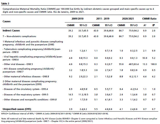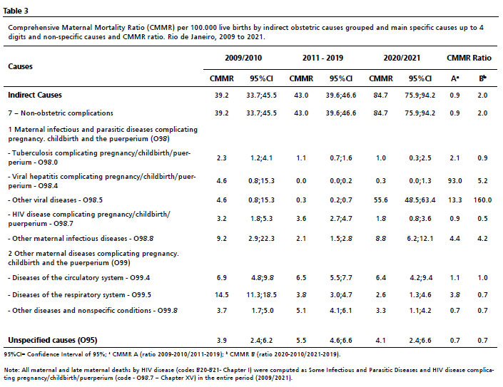 METHODS: ecological study using data from national mortality and live birth systems. Causes were described according to the WHO Maternal Causes Classification (ICD-MM). Maternal, late, and comprehensive mortality ratios were calculated per 100,000 live births with 95% confidence intervals (CI).