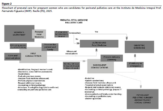 For the purpose of this protocol, at IMIP, all patients must have the fetal diagnosis confirmed by a fetal medicine specialist from the institution, as well as the follow-up ultrasonographic evaluations. It is recommended that, for patients who choose to continue the pregnancy, the terms "life-limiting condition" or "fetal and/or neonatal life-limiting condition" be used instead of "lethal malformation," in order to reduce the emotional impact on families.