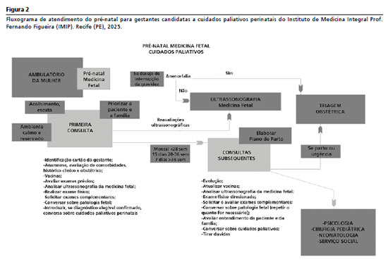 1.3) Consultas subsequentesNas consultas seguintes (Figura 2), o diagnóstico e as possibilidades de conduta devem ser revisados, sendo ofertados novamente à gestante/ família, os cuidados paliativos perinatais.