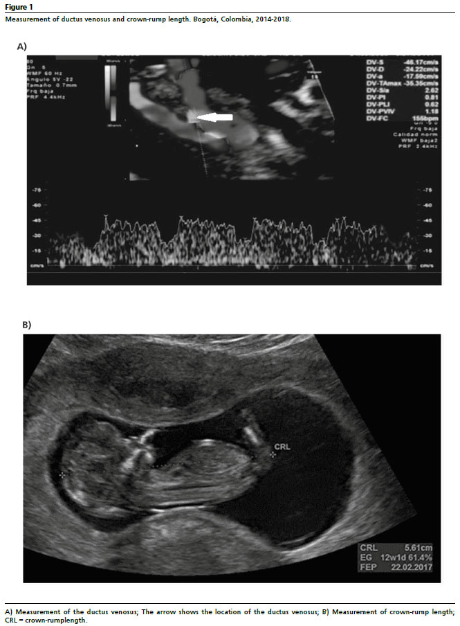 13-17Given the relationship between this vessel and the impact of placental insufficiency on fetal growth, this study is aimed at evaluating the relationship between DV and fetal growth variables during the first trimester in a population of pregnant Colombian women.
