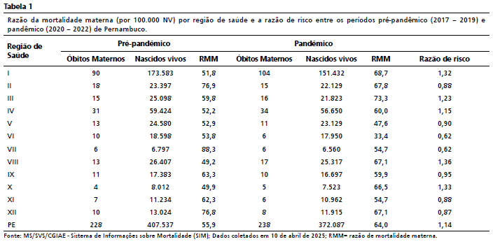 11-13 In this context, epidemiological analyses that encompass spatial and temporal dimensions are essential to identify vulnerable territories and guide public policies. The present study aims to analyze the spatial distribution and temporal trend of the maternal mortality ratio in Pernambuco, before and during the COVID-19 pandemic.