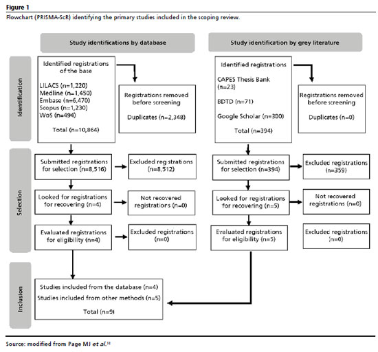 METHODS: this is a scoping review conducted according to the Joanna Briggs Institute Reviewer's Manual for Scoping Reviews and PRISMA-ScR guidelines. Publications in Portuguese, English, and Spanish were included, without time restrictions, identified in the LILACS, MEDLINE, EMBASE, Scopus, Web of Science databases and in the grey literature (Google Scholar).