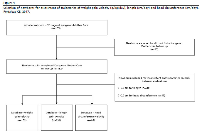 Accordingly, this study aimed to analyze trajectories of growth velocity according to the practice of EBF in preterm and LBW infants followed in KMC.