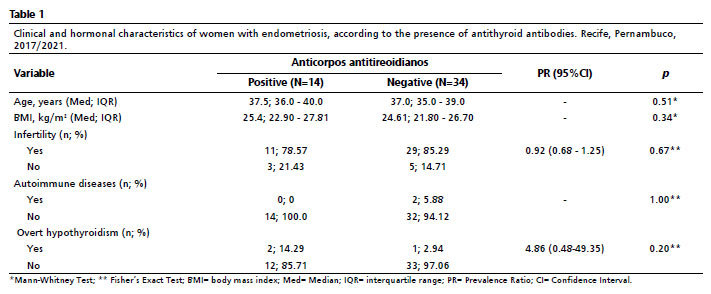 Given these uncertainties, this study aimed to evaluate the ovarian reserve of women with endometriosis, based on the positivity of anti-thyroid antibodies.