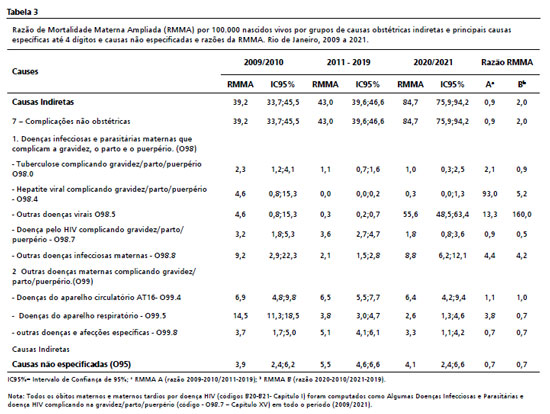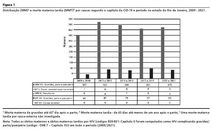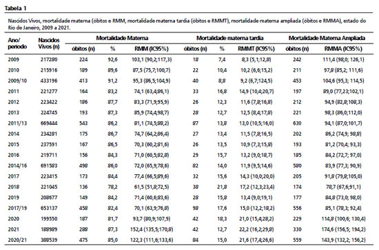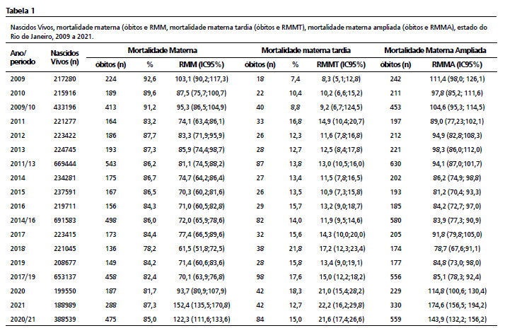 MétodosTrata-se de um estudo ecológico descritivo da mortalidade materna, com ênfase na mortalidade materna tardia e nas causas de morte de mulheres residentes no estado do Rio de Janeiro de 2009 a 2021.