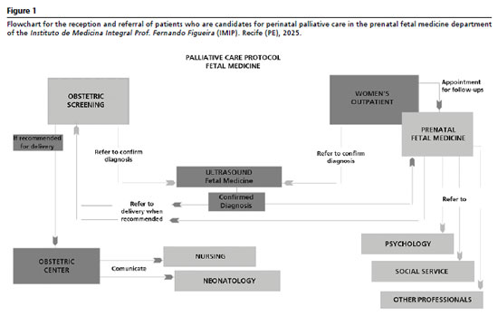 The selected articles were analyzed, highlighting available resources and the experience in care in the fetal medicine unit at IMIP. Based on these sources, the concept of perinatal palliative care, the eligible fetal anomalies and their diagnostic criteria, communication guidelines, prenatal and delivery care, bereavement, and postpartum approaches were defined, and besides the development of a birth plan to be discussed with patients and families during prenatal care, was also included.